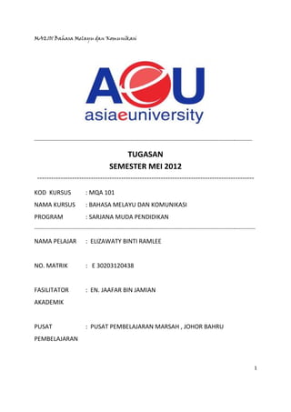 Bmu 533 Past Assignment Question Bmu 533 Bahasa Melayu Undang Undang I Tugasan Individu 1 20 Studocu